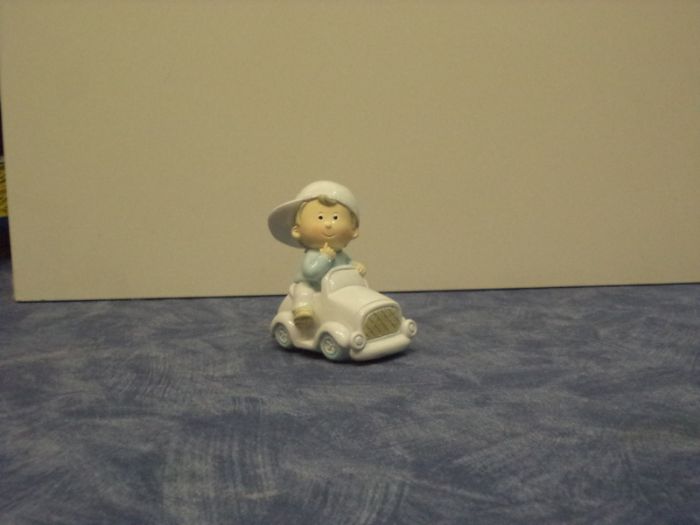 pregiata resina lucida bimbo con macchina bianca e celeste cm 9x11 alto