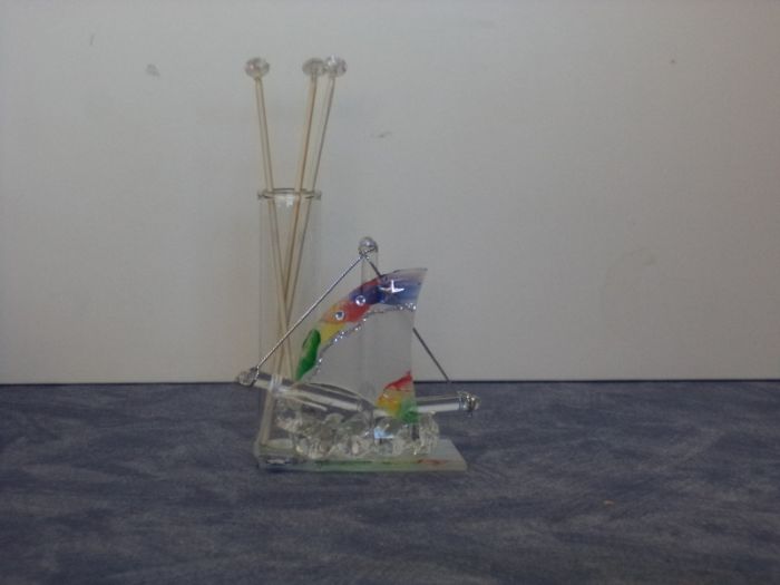 veliero composto da 1 vela con strass e profumo color arcobaleno lungo cm10 x 11 cm di altezza.