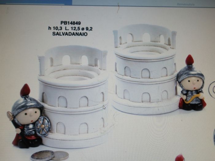 salvadanaio con centurioni e colosseo 10.3 cm. 2 assortimenti prezzo singolo