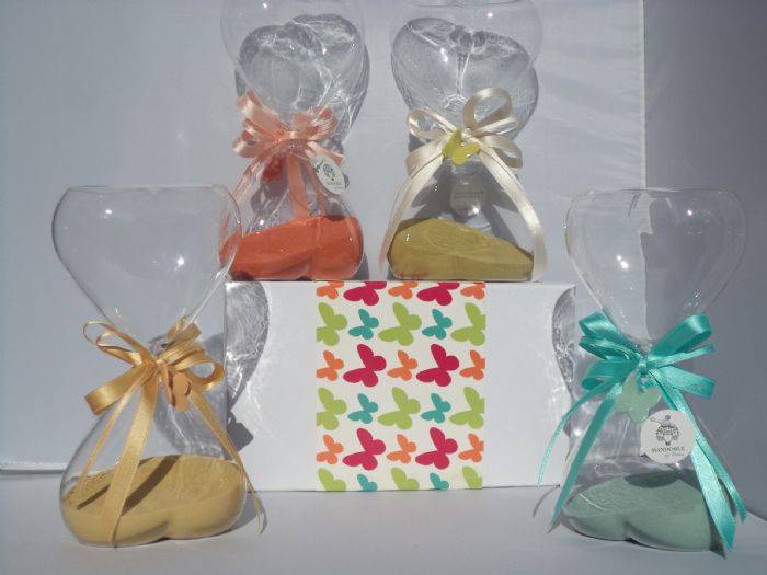 clessidra in vetro grande con fiocco e farfalla 20 cm. 4 assortimenti, prezzo singolo