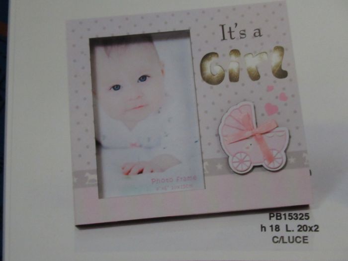 portafoto in legno con luci con carrozzina rosa 20 cm. con luce