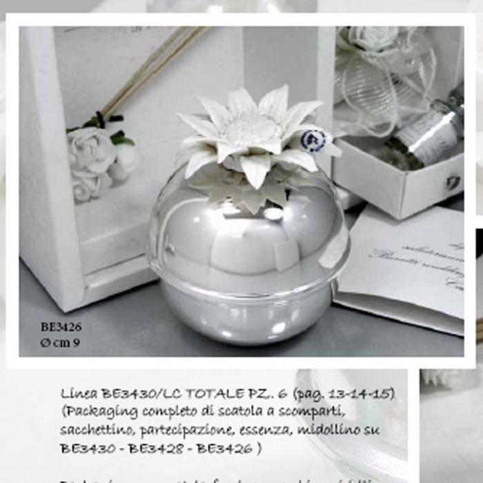 diffusore argento grande con girasole porcellana avorio corredato di scatola a scomparti + sacchetto e partecipazione compresi