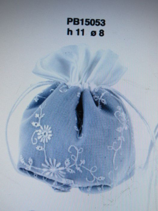 sacchetto confett/fiori bianchi cm 11 in stoffa