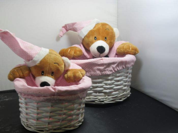 cesto vimini rotondo set da 2 pezzi peluche rosa