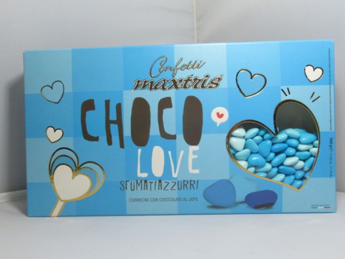 confetti max tris a forma di cuoricino sfumato azzurro con cioccolato al latte 500gr