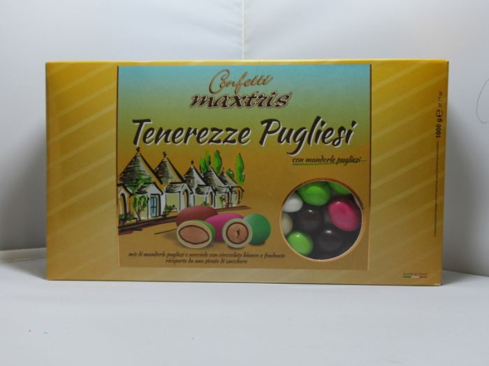 confetti max tris mix di mandorle pugliesi e nocciole con cioccolato bianco fondente ricoperto da uno strato di zucchero 1000gr
