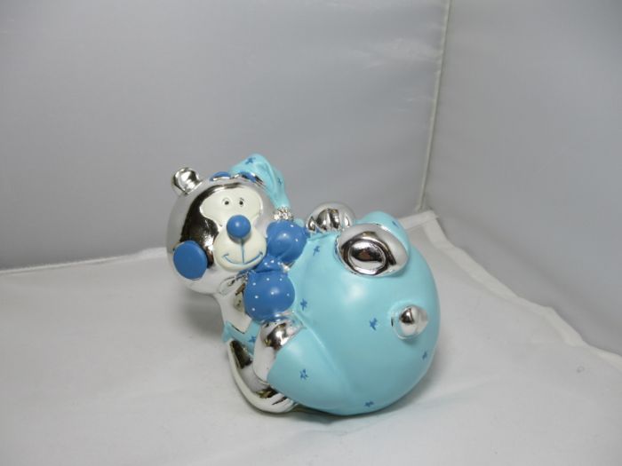 salvadanaio in resina argentata celeste