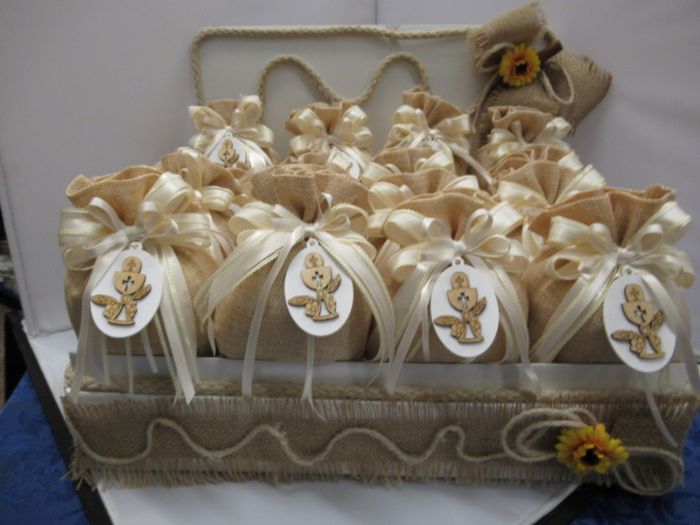 saccotto juta con aplicazione calice legno completa pz16 con espositore omaggio