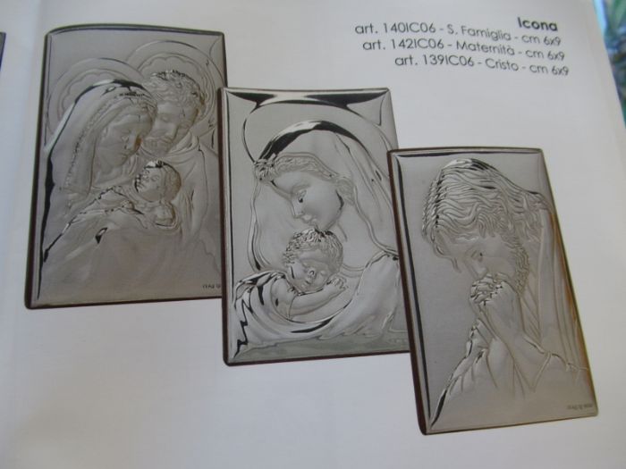 icona bilaminato arg. quadretto con maternita′ cm 6x9