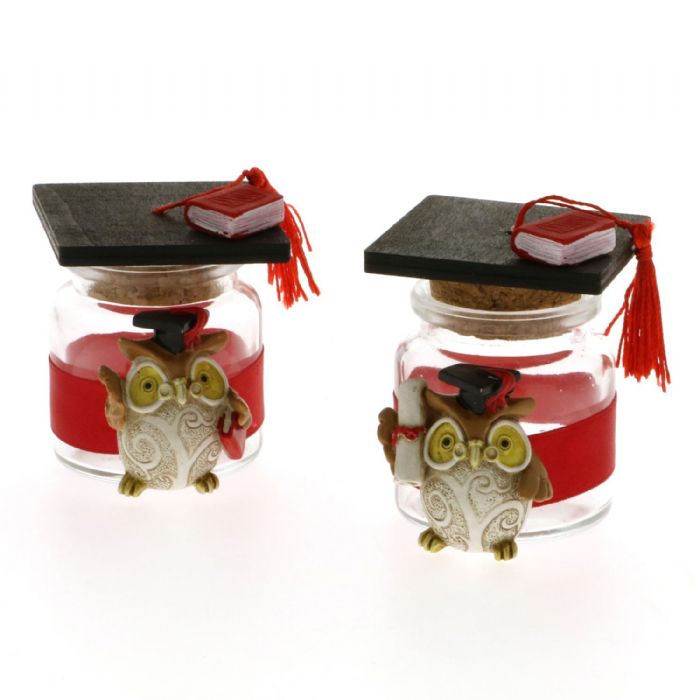 barattolo in vetro con gufo dotto cm 6,5 assortimento da 2 pezzi prezzo cad.