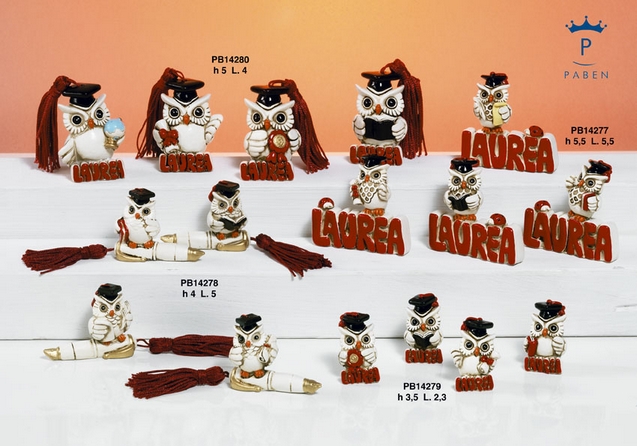gufo scritta laurea cm 3,5 assortimento da 4 pezzi prezzo cad.