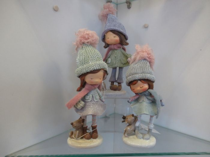graziosissima ragazza spiritosa con cappello - alta 21 cm in resina e stoffa assorortmento da 3 pezzi prezzo cad .adatta sia a regalo che bellissime bomboniere
