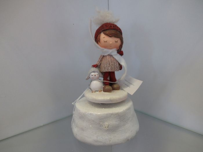 graziosissimo carillon bimba con cappello -pinguino alta 17 cm in resina e stoffa adatta sia a regalo che bellissime bomboniere