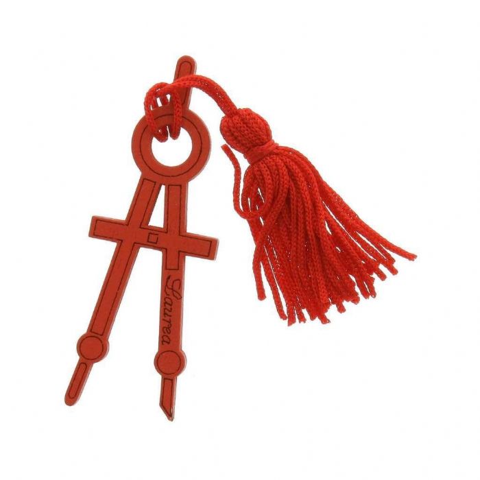 applicazione compasso con nappa in legno rosso grande 2,5x7