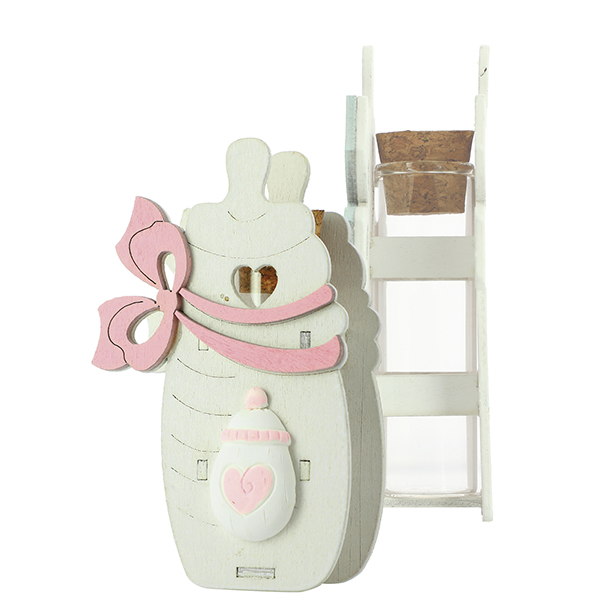 box biberon legno rosa con fiala vetro porta confetto 7x11,5