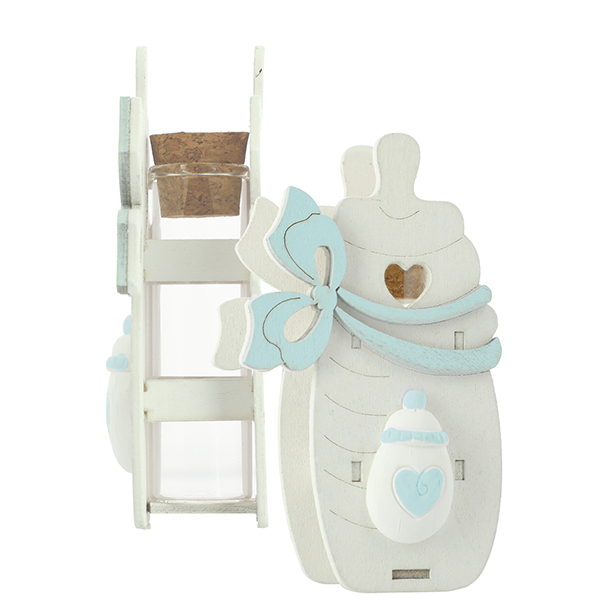 box biberon legno cielo con fiala vetro porta confetto 7x11,5