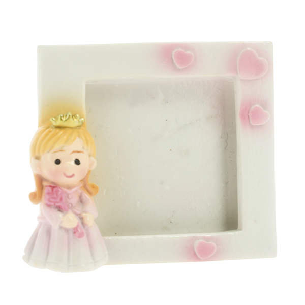 mini portafoto principessa rosa con corona oro in resina