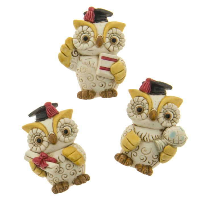 collezione DOCTOR gufetti da laurea in resina magnete cm 5 pezzi pz 3 assortiti prezzo cad.