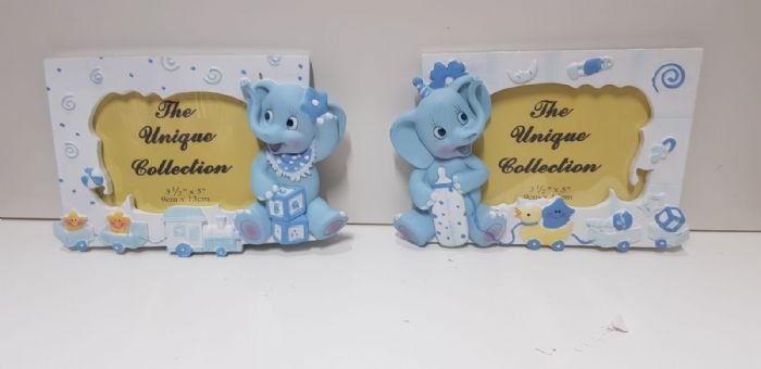 graziosa cornice in resina con elefantino biberon cm 18x12 assortimento da 2 pez