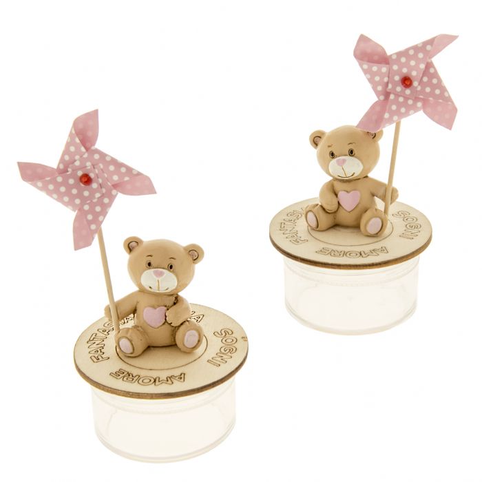 collezione girellino plexi box rosa teneri orsetti in resina con girella vera assortimento da due pz 2 cm 12 h