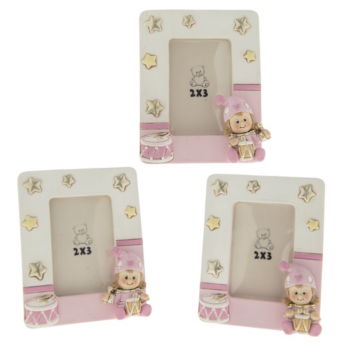collezione jolly bimbi allegri rosa in resina portafoto assortimento da tre pz cm 8 h 11 prezzo cad.