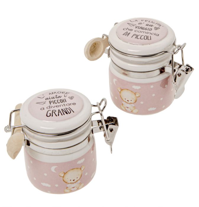 bomboniera utile collezione baby barattolo rosa h 6,5 cm assortimento da pz2 prezzo cad