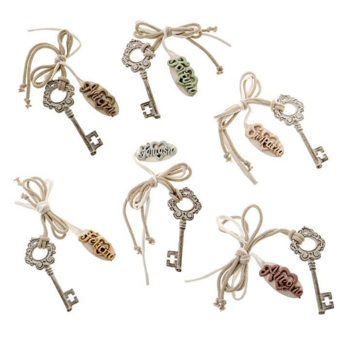 chiavi del cuore con dedica cm 13 assortimento da pz 6