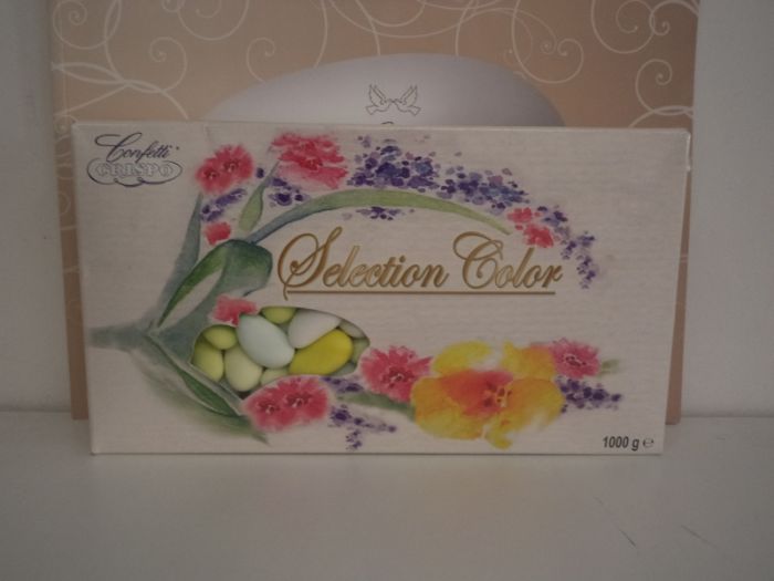 confetti da 1 kg con una pregiata mandorla avvolta da un sottile strato di zucchero colori sfumati
