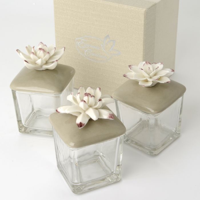 collezione diamante scatola bi-colore con logo con fiore cm 6 h. 10 3 pezzi assortiti con scatola