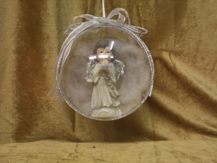 articolo natalizio raffinato per un natale personalizzato palla in plexigas diam.50 con angelo suonatore in resina pregiata argento