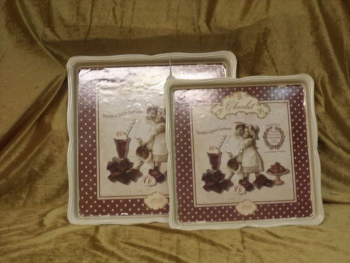 articolo natalizio raffinato bis di vassoiin metallo alto 30x30cm in giu′
