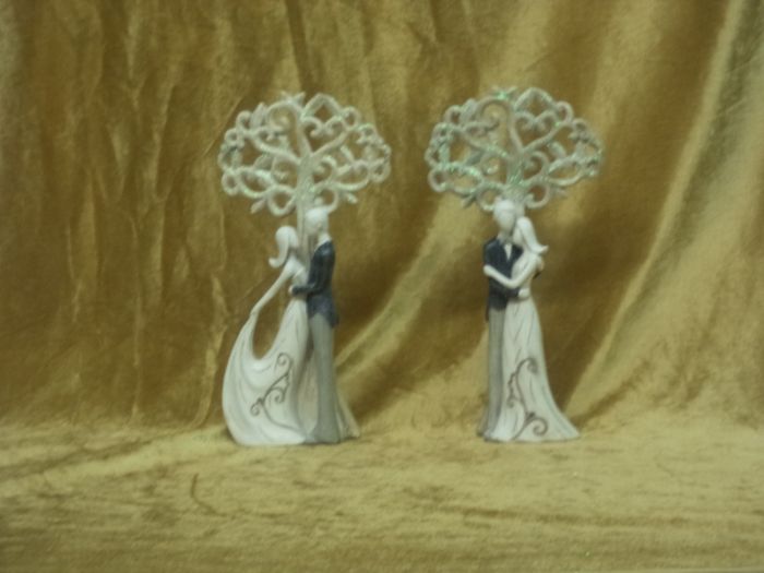 suggestiva bomboniera in resina coppia innamorati con albero alta cm 18.5 pezzi 2assortit