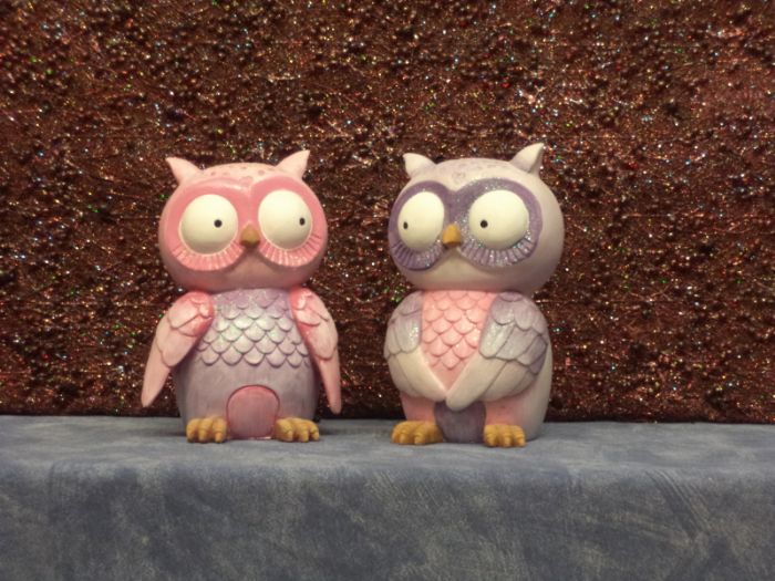 salvadanaio in resina colorata gufo spiritoso assortimento da due pezzi cm 16,5