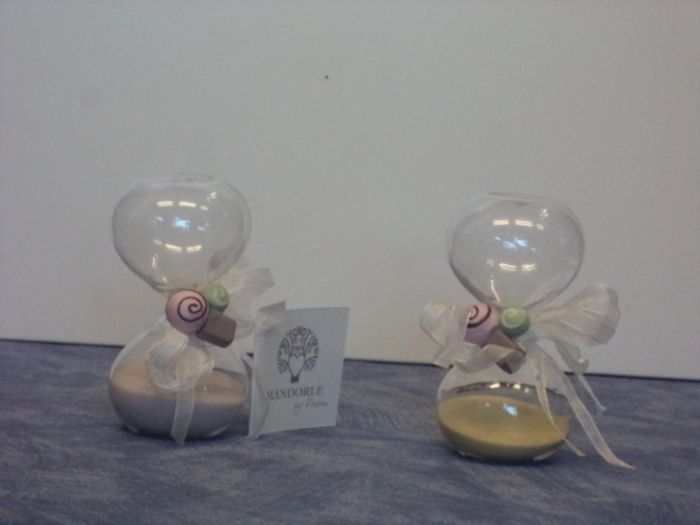 preziosissima ed utile bomboniera clessidra in vetro con sabbia colorata alta cm 10 assortimento da due pezzi