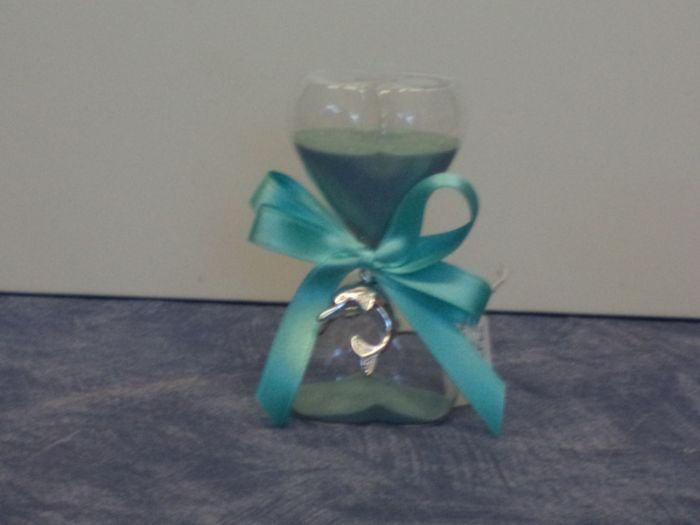 preziosissima ed utile bomboniera clessidra in vetro con sabbia colorata alta cm 11,5