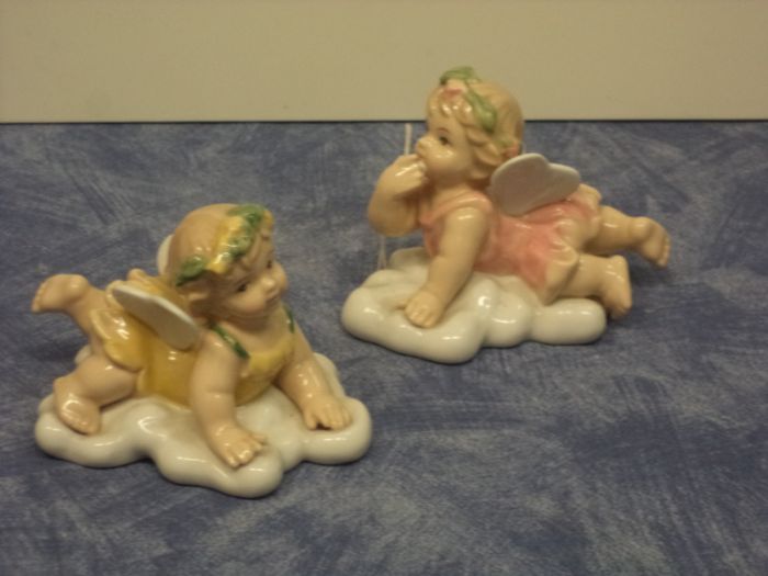 pregiata bomboniera di porcellana angelo su nuvola assortita da 2 pezzi cm 11