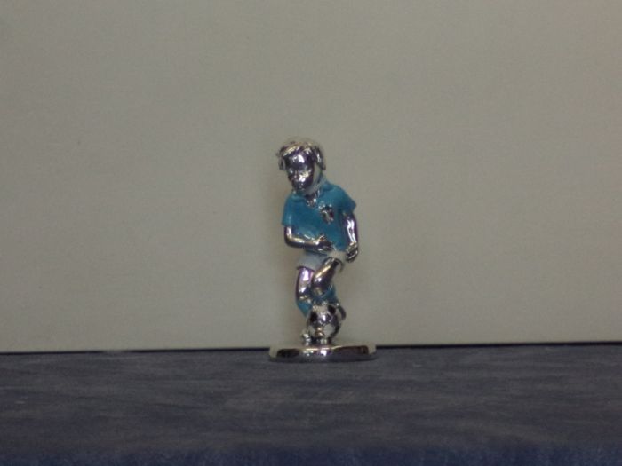oggetto made in italy calciatore argentato alt cm 10 azzurro