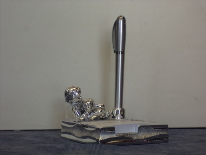 oggetto made in italy potapenne con blok notes argentato cm11x9xh16