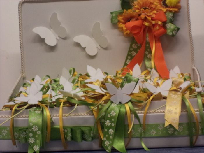 articolo pasquale con nastri decorati farfalle in carta e cannella