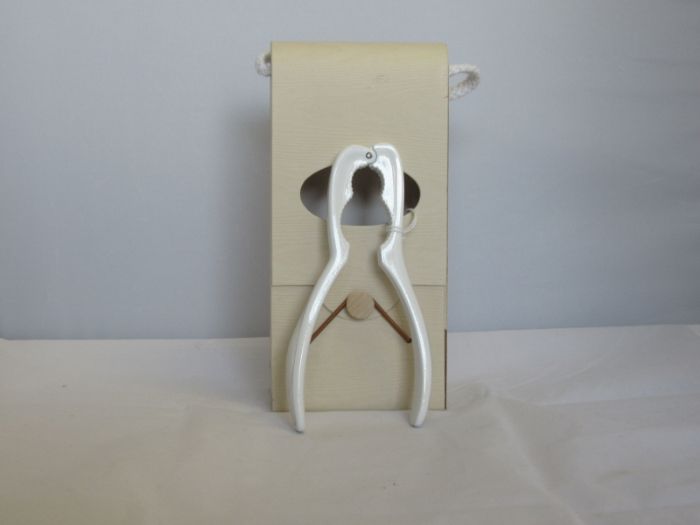 bomboniera utile con box rifinito legno sciaccianoci smaltato bianco in acciaio cm 16