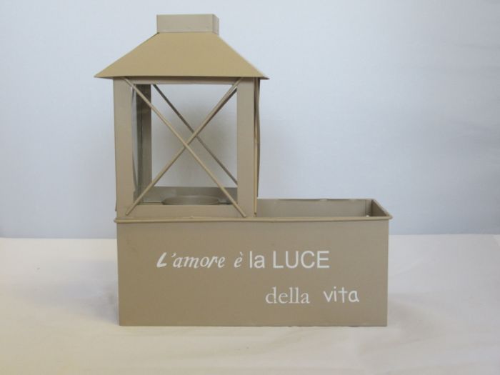 portapiante lanterna beige cm 19x21 in metallo con scritta " l′amore e la luce della vita"