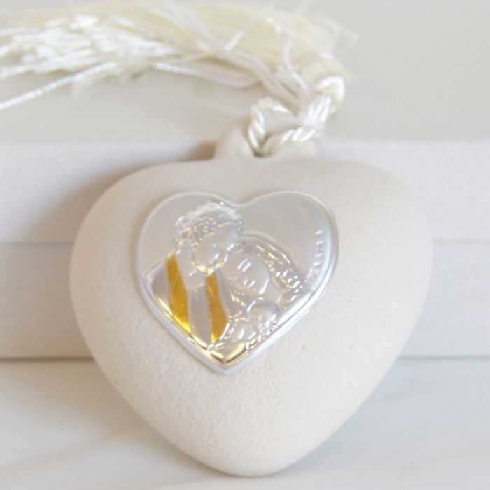 CUORE CERAMICA STONE CON SACRA FAMIGLIA