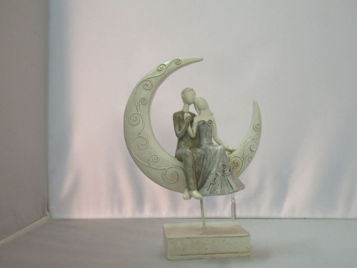 collezione tenero/leggero coppie artistiche in resina h 14 innamorati su mezza luna