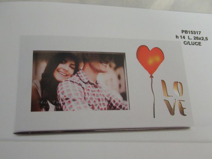 portafoto in legno con luci con palloncino a forma di cuore 26 cm. con luce