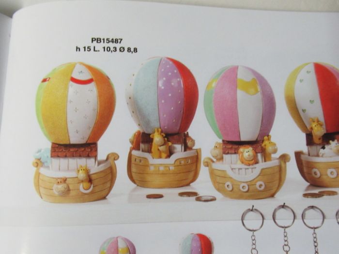 salvadanaio mongolfiera arca in resina con 4 assortimenti 15 cm. prezzo caduno