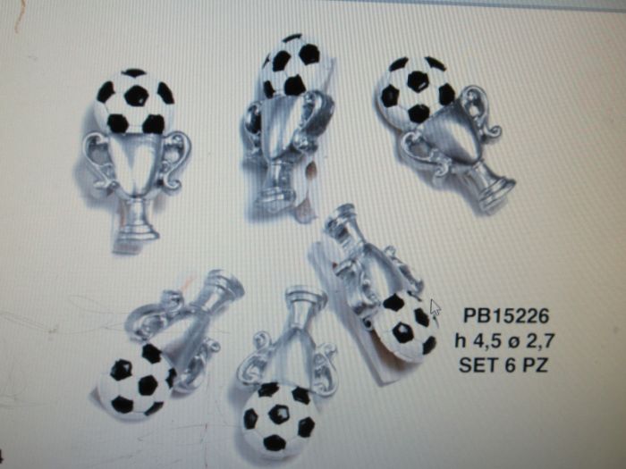 mollette a forma di coppa con pallone in resina e legno 4.5 cm. prezzo cadauno