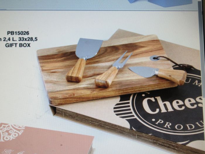 set tagliere 3 utensili formaggio cm33 legno+metallo k con box