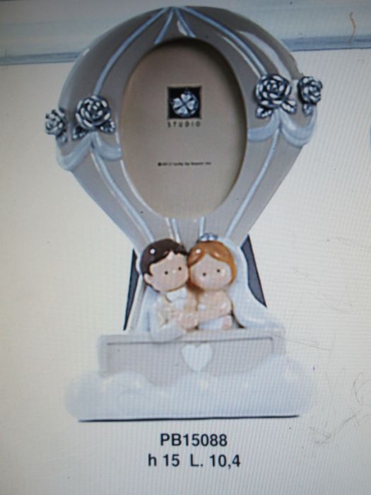 portafoto sposini spiritosi in mongolfiera cm 15 in resina