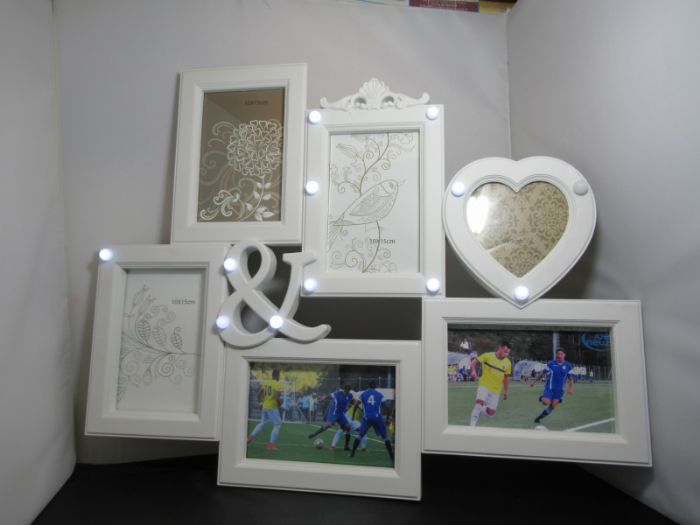 cornice multipla in pvc con led 51x42 globale con p/foto 10x15 e 10x10cm