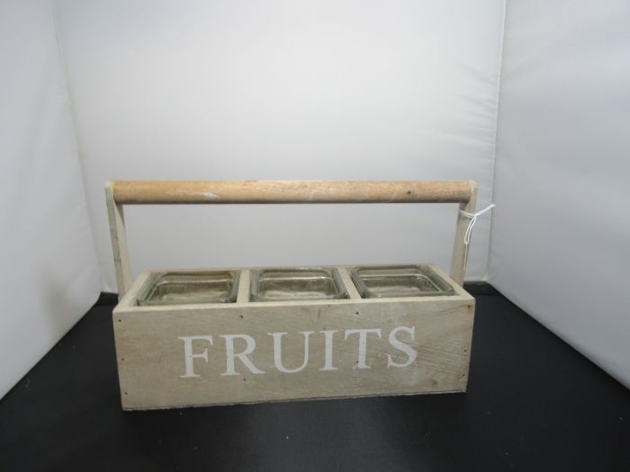 porta piantine in vetro con contenitore con manico in legno rustico